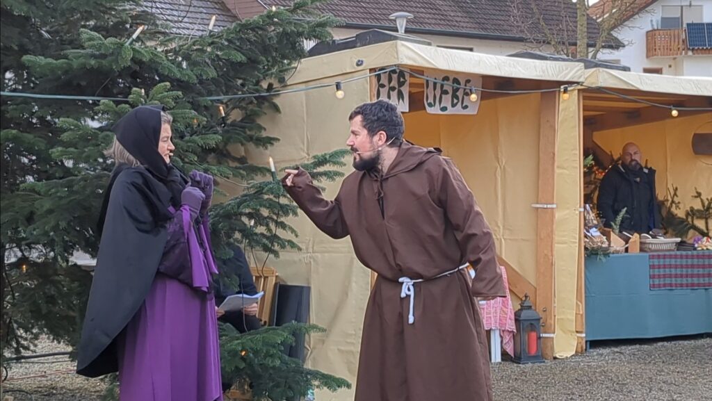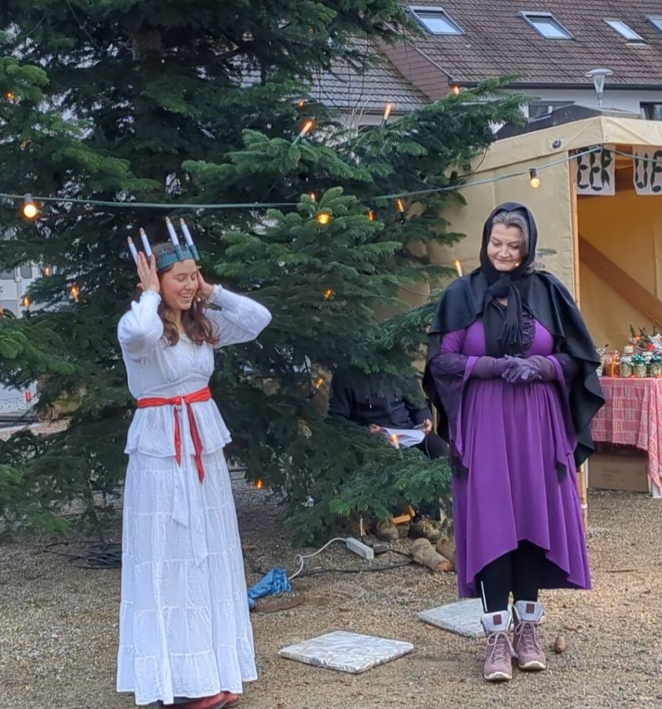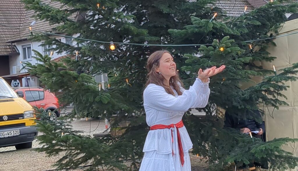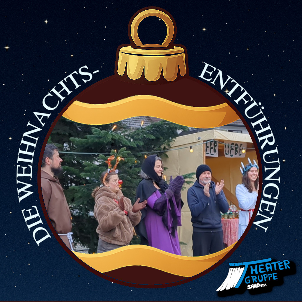 Erstmal präsentierte unsere Theatergruppe ein weihnachtliches Theaterstück auf dem Sander Weihnachtsmarkt. Mit viel Herzblut präsentierten wir das Weihnachtsmärchen »Die Weihnachtsentführungen«, ein Stück voller Humor, Spannung und festlicher Stimmung. Geschrieben wurde das Märchen von unserem Regisseur Jonah Siebert, der es erneut geschafft hat, eine Geschichte zu erschaffen, die gleichermaßen Kinder wie Erwachsene mitreißt.
