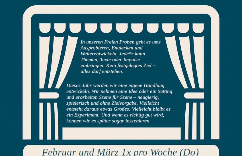 Du möchtest Schauspiel ausprobieren, deine Improvisationsfähigkeiten erweitern oder einfach Spaß am kreativen Spiel haben – ganz ohne den Druck eines